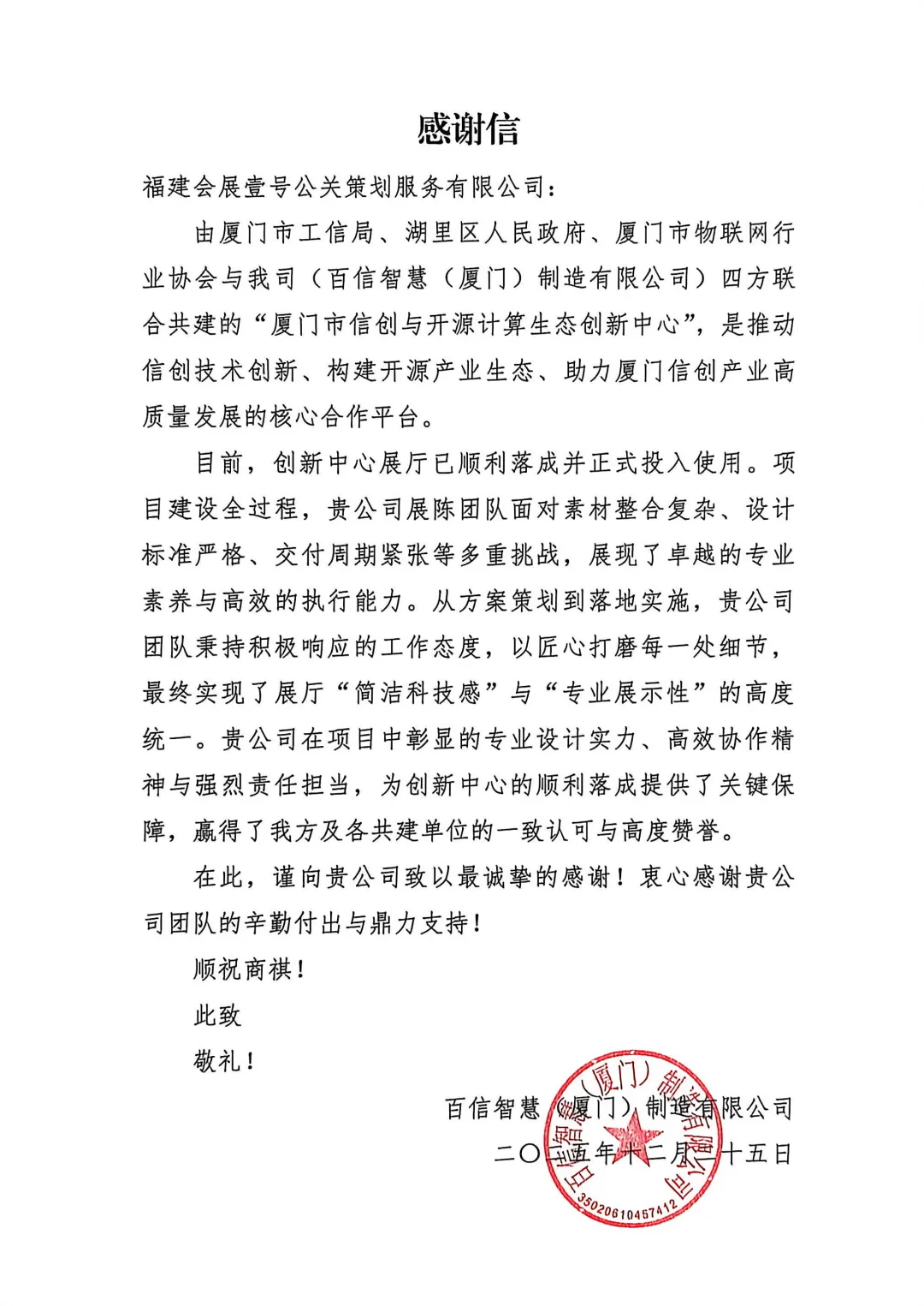 由会展壹号公关全程策划并落地的百信智慧“信创和开源计算生态创新中心”展厅正式启幕。该项目历时20天精心打磨,全面展现了百信智慧在信创领域的战略布局、尖端技术成果与卓越智造实力,成功打造出一张彰显品牌、连接产业的“立体名片”。的“立体名片”