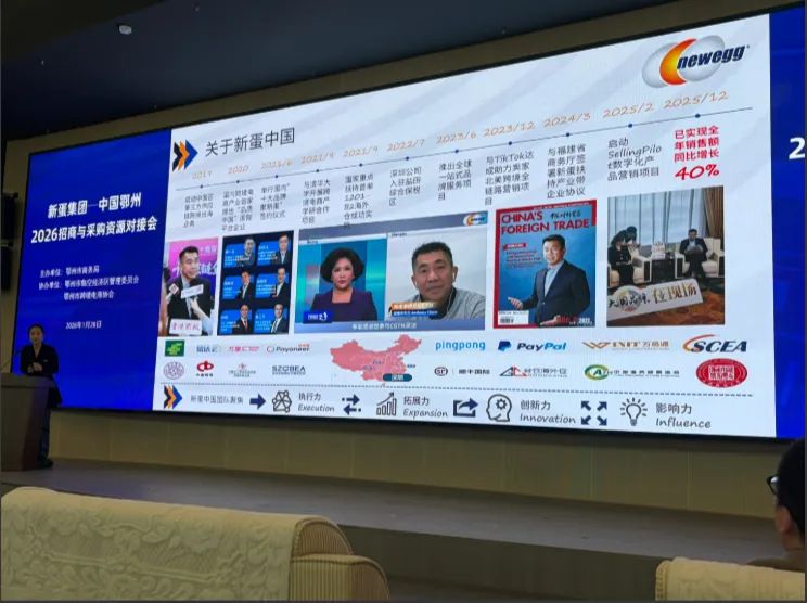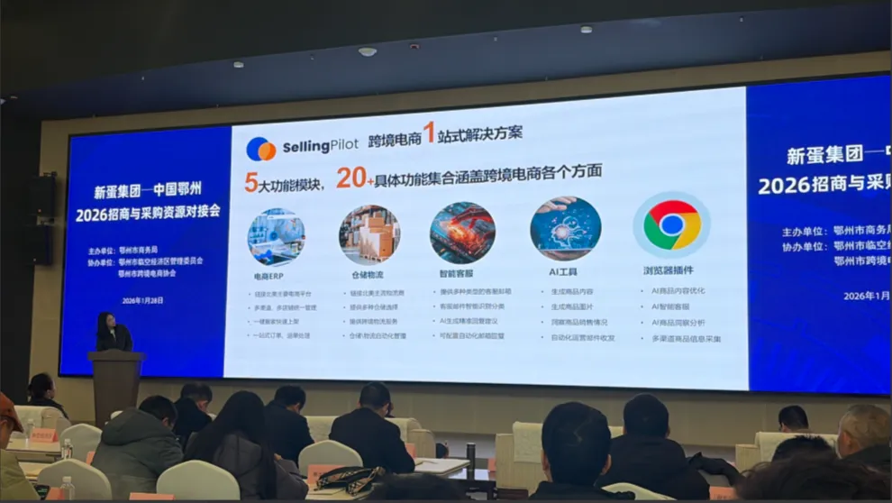 ?2026 开年跨境大事件!1 月 28 日,新蛋中国 2026 招商与采购资源对接会在鄂州跨境电商产业园圆满举办。这场活动不仅是政企联动的高光时刻,更是新蛋旗下智能跨境运营管理平台SellingPilot的重要里程碑 —— 顺丰国际正式入驻,为中国卖家的全球生意按下 “加速键”。