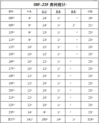 1.更换范围:8F-23F客房 ,共计316间房,行政酒廊、3楼4个会议室、22层廊道;