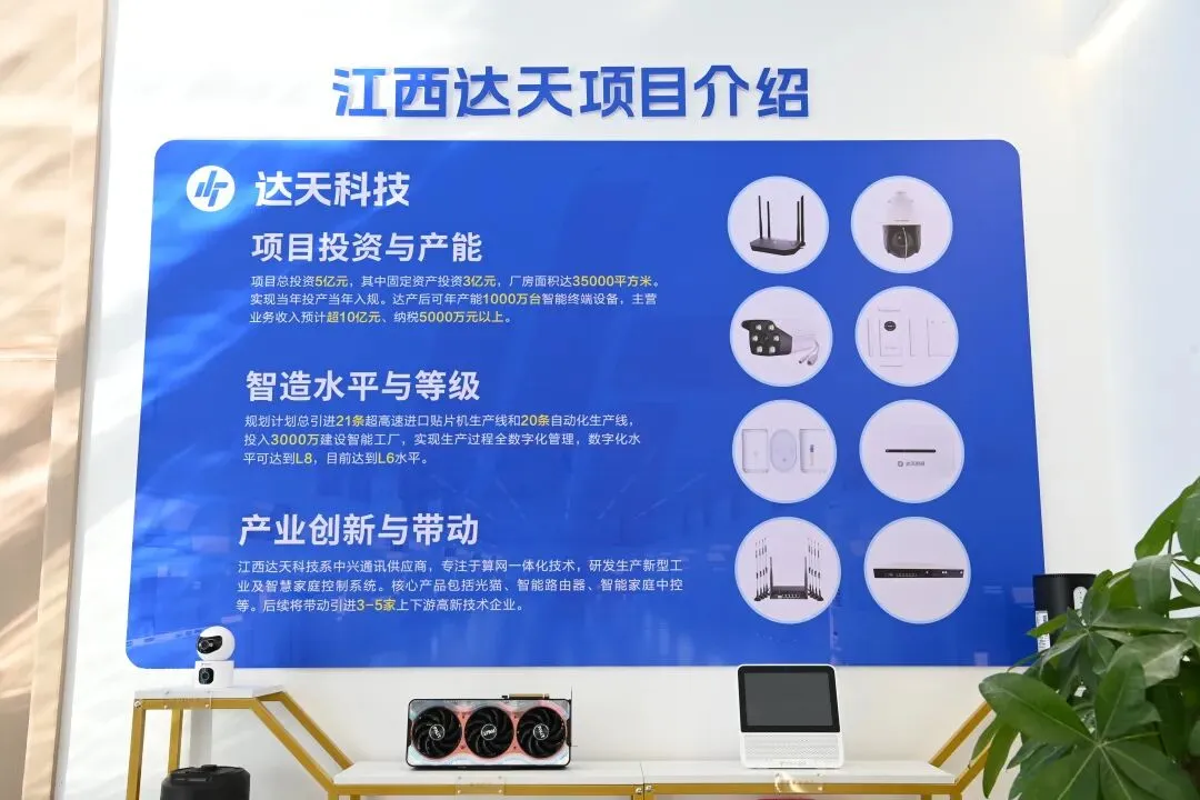 据了解,江西达天科技有限公司专注于算网一体化技术,研发生产新型工业及智慧家庭控制系统。公司年产1000万件家庭终端产品生产项目,总投资5亿元,是我县聚焦电子信息产业招引的重点项目之一。项目于2025年2月开工建设,当年12月实现竣工投产,充分展现了高效的“达天速度”。项目生产过程智能化、数字化水平高,极大地提升了效率与品质,达产后年产值可达10亿元以上,纳税超5000万元,提供超过800个就业岗位。