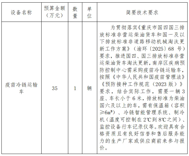 重庆市南岸区疾病预防控制中心 仪器设备采购需求调查