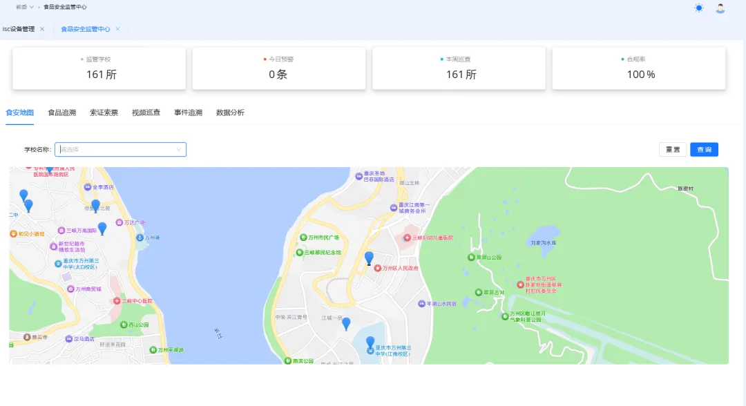 实现食安监管一屏统管,提升监管效率,构建全域覆盖监管格局。