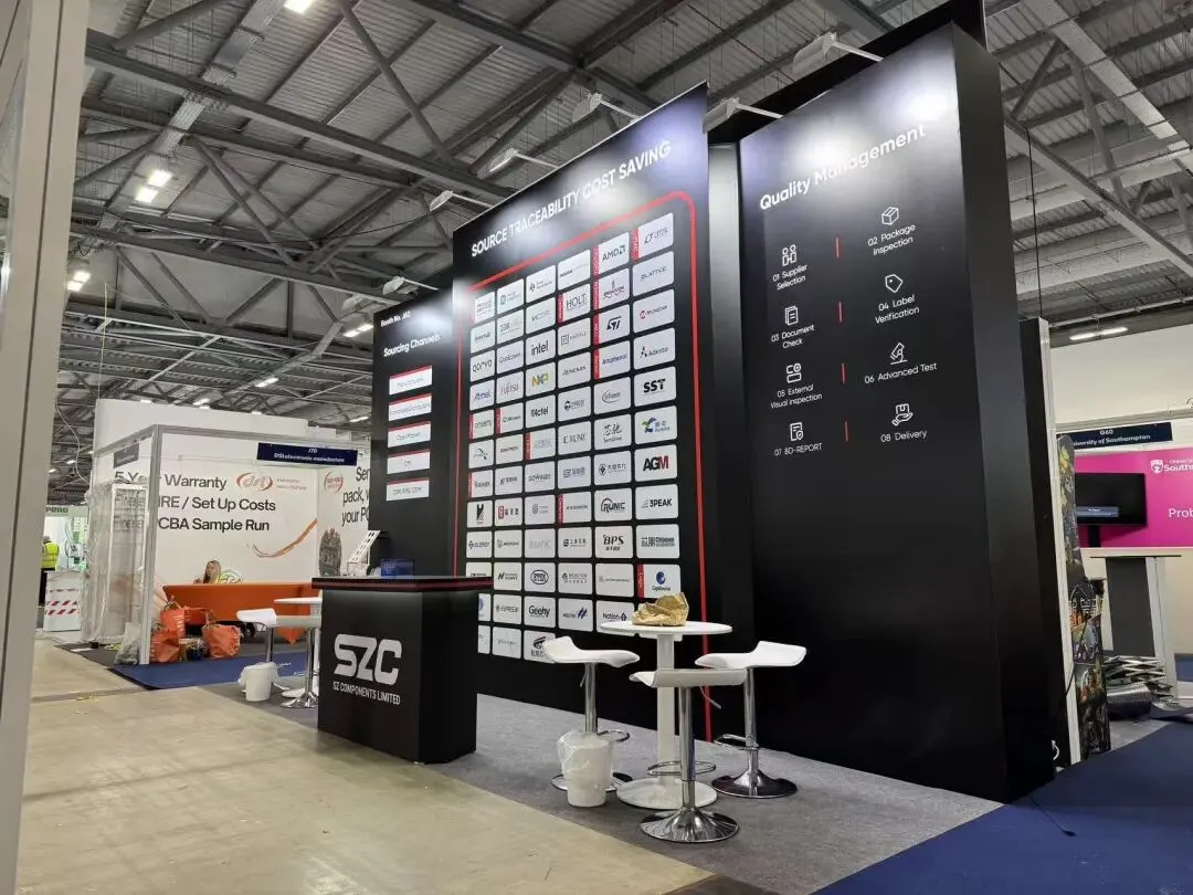 这个展台不仅是一个展示空间,更是SZ Components拓展全球客户的重要窗口。简约而富有冲击力的设计,让SZC在众多展位中迅速抓住了采购商的目光。清晰的业务展示和舒适的洽谈环境,让潜在客户更愿意停留交流,大幅提升了现场商务对接的效率。