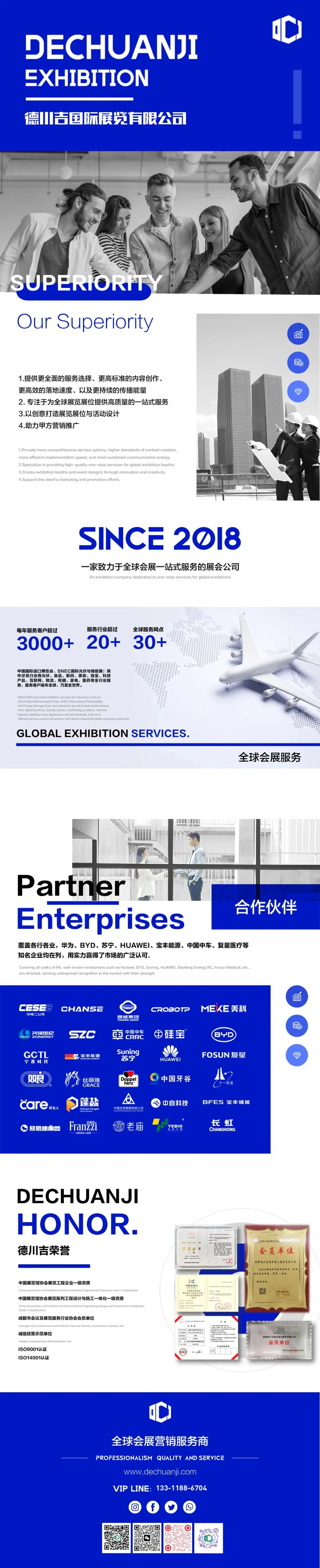 自2018年成立以来,德川吉展览始终以“Professionalism Quality and Service”为核心宗旨,核心优势聚焦全球落地、全链服务、设计还原、成本合规、数字赋能五大维度,助力品牌高效出海参展。深耕全球会展营销领域,从展台设计搭建到会议活动策划、展厅空间打造。