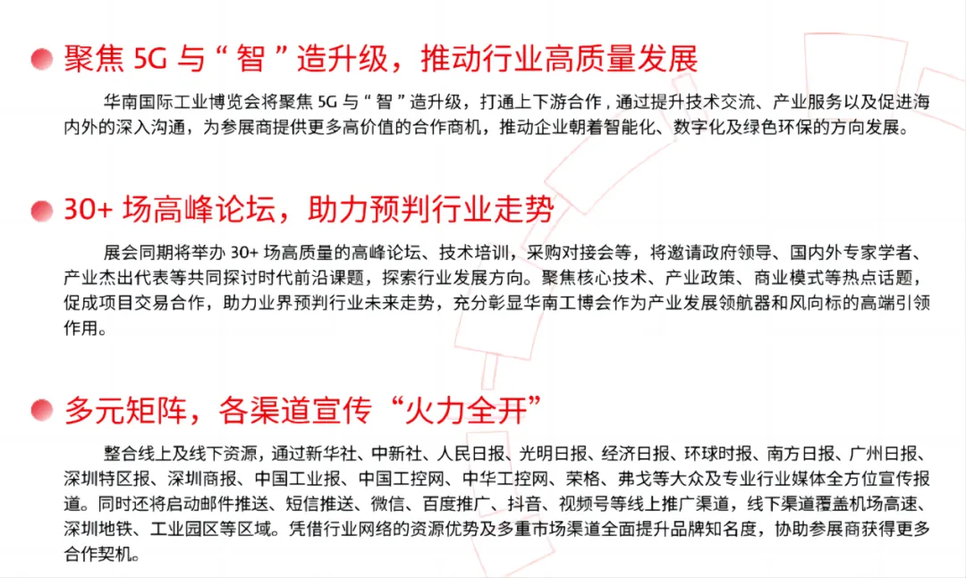 2023年华南国际工业博览会将于2023年6月27日-29日于深圳会展中心(宝安)举行,目前展位剩余量有限,欢迎各企业提前报名参加。
