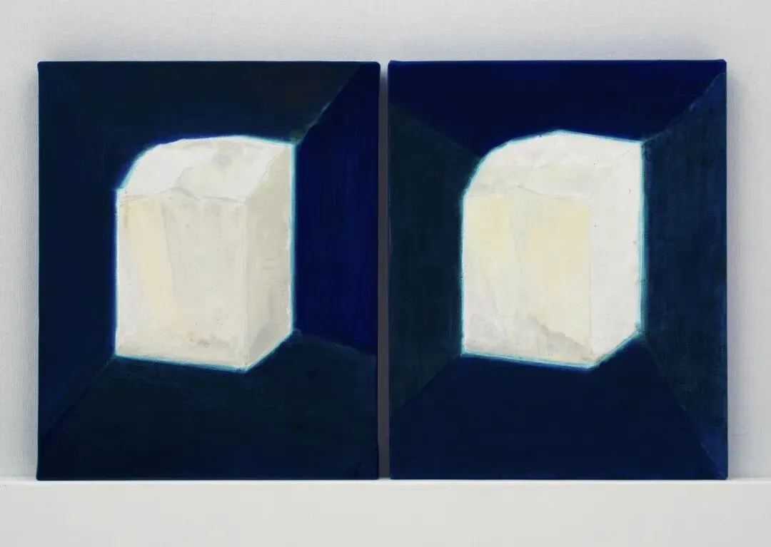 石至莹,《白石料1,2》,2016-2023,布面油画, 40 × 30 cm × 2,致谢艺术家