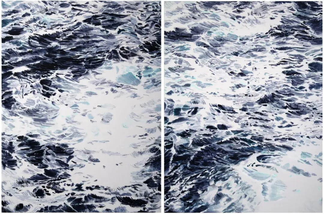 石至莹,《海浪No.1,2》,2019,布面油画, 240× 180cm× 2,图片来源于石至莹工作室