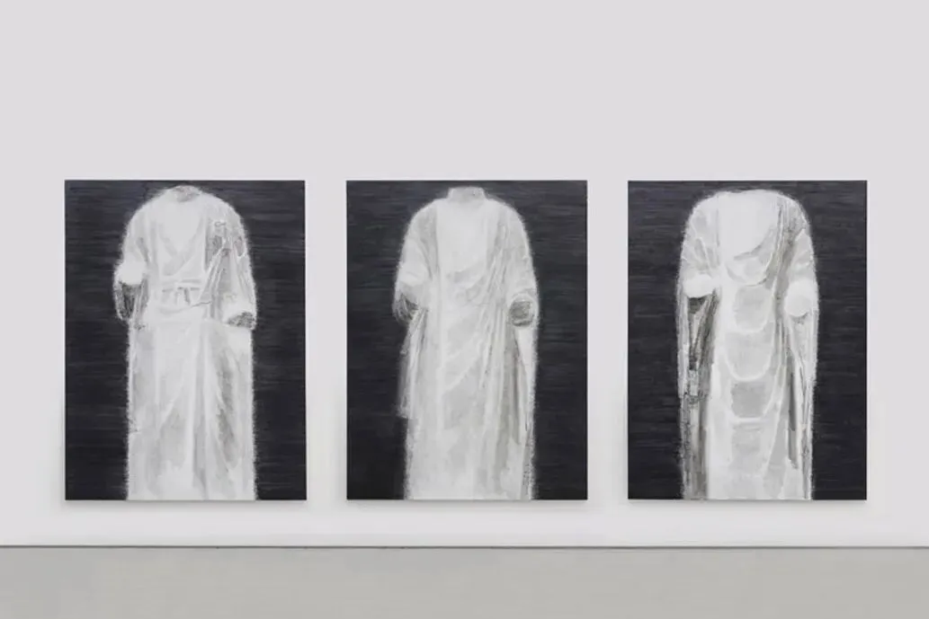 石至莹,(左起)《白石佛像7》《白石佛像4》《白石佛像6》,2014,布面油画,240 × 180cm × 3,©“和尘同光”展览现场,2014,空白空间北京