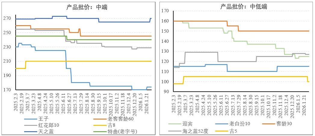 汾酒:因2025年每季度末均有打款要求,渠道库存压力累积,青花20库存水平超过2个月,不过春节启动库存边际有所去化。