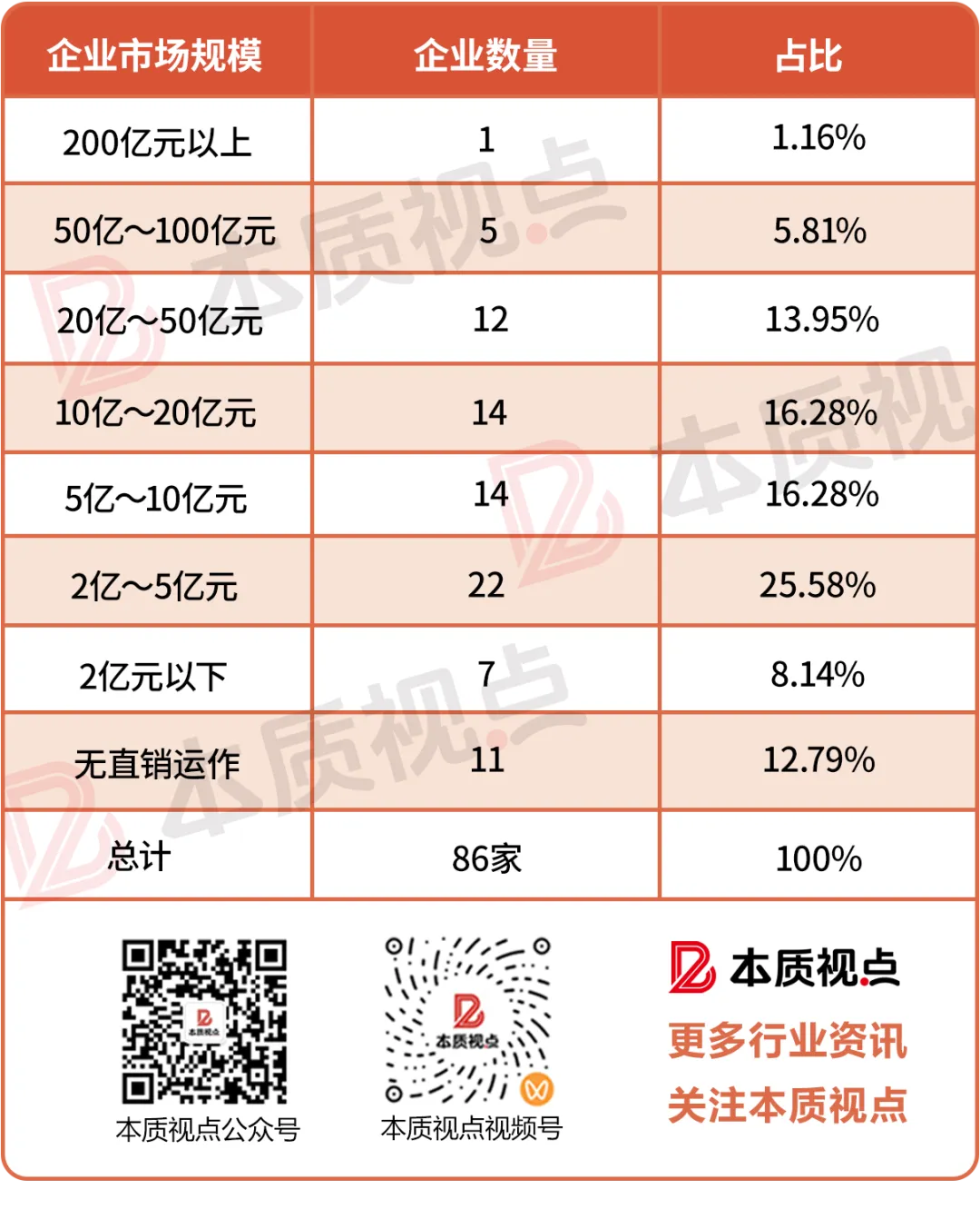 在20亿~50亿元区间的有12家企业,占拿牌企业总量的13.95%,相较2024年增幅较大,说明行业中坚层得到了充实,这是行业回暖的重要标志。这里面有外资企业市场表现最为稳定的企业们,更有通过长期经营获得稳定市场地位的内资列强。