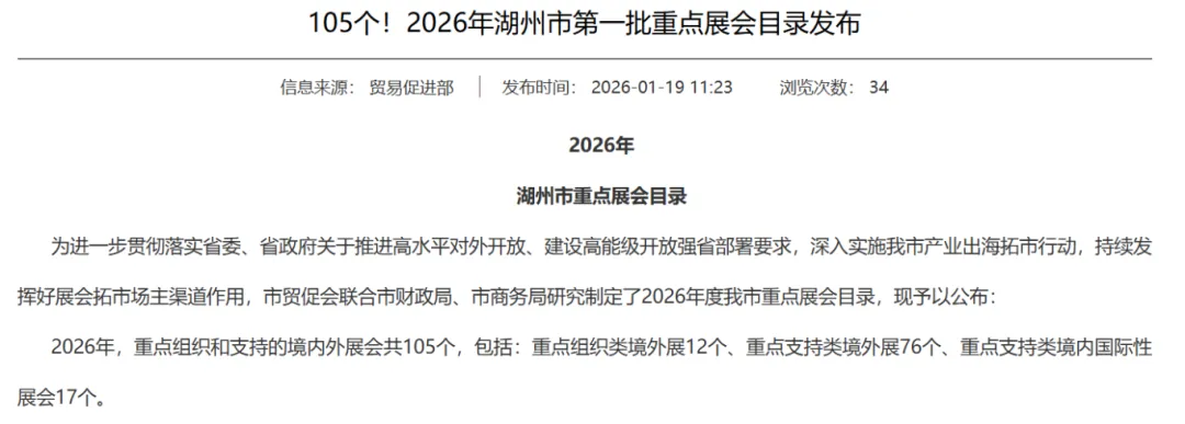 105个!2026年湖州市第一批重点展会目录发布