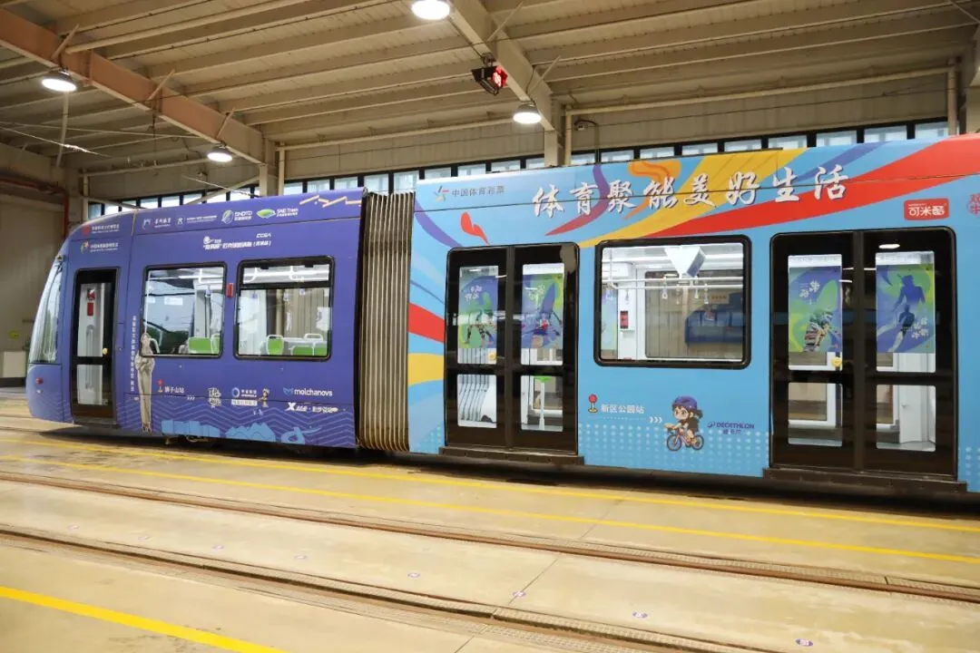 启动仪式后,与会代表实地观摩苏州高新区有轨电车两个博览会联动主题列车首发,并赴杵山交通枢纽、环太湖大道调研自行车运动公园及骑行驿站。作为配套活动,“下班运动员-全民健身挑战”同步掀起热潮——在满铺人工草皮的互动区,划船机竞速、硬拉挑战、足球射门三大互动体验项目吸引周边市民参与,完成三大挑战即可赢得丰厚礼品。同时设立健康服务点、知名品牌展示区、体彩主题宣传车及创意打卡点,通过“运动体验+品牌曝光+社交传播”组合拳,进一步丰富活动氛围。