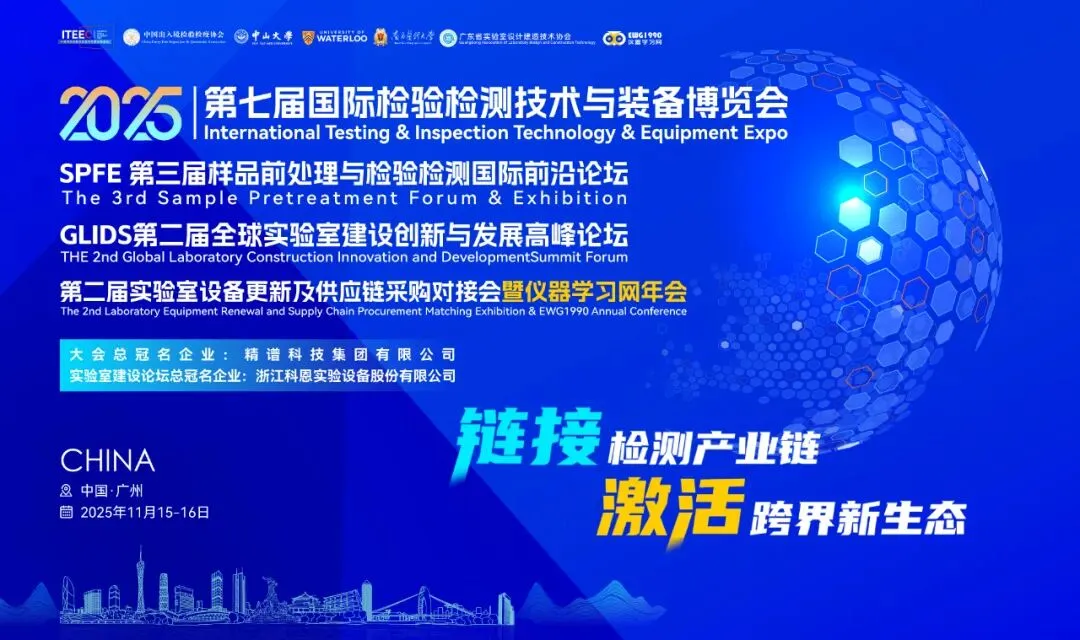 由中国出入境检验检疫协会、中山大学、加拿大滑铁卢大学、广东省实验室设计建造技术协会联合主办,中国海关学会支持,中检协实验室检测仪器设备分会与 EWG1990 仪器学习网承办的 “第七届国际检验检测技术与装备博览会(简称检博会)”、“第二届全球实验室建设创新与发展高峰论坛”、“SPFF第三届样品前得理与检验检测国际前沿论坛”、“2025年实验室设备更新及供应链采购对接会”,将于 2025 年11月15-16日在广州保利世贸博览馆盛大开幕。作为经商务部批准、原国家质检总局认可的检验检测领域权威性盛会,本届展会汇聚全球行业资源,以 “链接检测产业链,激活跨界新生态” 为核心理念,打造集技术展示、学术交流、商贸对接、成果转化于一体的顶级平台。