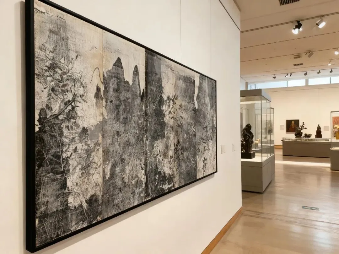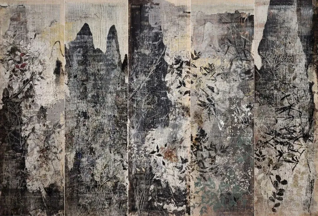 五联幅壁画作品以当代公共艺术形式重构水墨语言,作品采用了中国传统材料苎麻、植物矿物色、中药粉为媒材,古朴沧桑中透着恢弘厚重的自然史诗感。该壁画将特定的公共空间转化为山水冥想场域,呼应“河洛文化”的生生不息。“岳峙”以山岳永恒之境,唤醒都市人对自然的诗意回归。作品承袭写意精神,为十三朝古都的当代空间注入东方哲思的精神锚点。