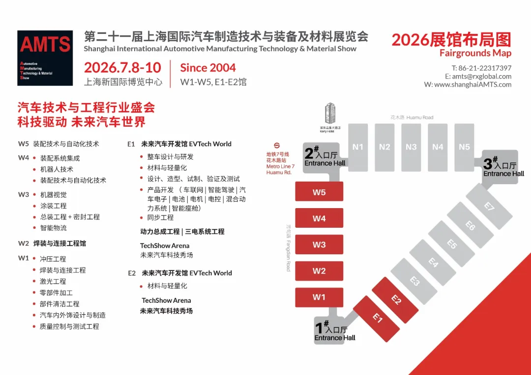 作为专业的汽车技术与工程行业盛会,AMTS 2026第二十一届上海国际汽车制造技术与装备及材料展览会,已从汽车制造技术展示平台跃升为全球汽车智造生态的枢纽,紧跟行业发展及市场需求,更加关注未来汽车开发板块——聚焦智能网联、车身轻质结构、AI科技、信息化、数字化生产等高新科技,一站式展示新能源汽车高新科技,整车材料与设计、开发与试制、验证与测试、三电系统工程、车身及部件冲压、连接及涂装、总装、质量控制及测试、核心部件加工、自动化装配与生产等工程领域创新技术及解决方案。