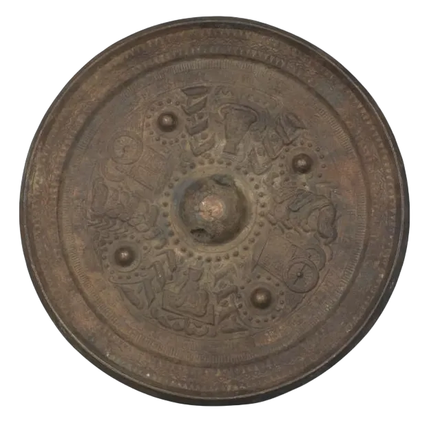 铜镜萌芽于金石并用时期的齐家文化,流行于春秋战国,盛于汉唐,衰于宋元明清,至近代随着玻璃镜的普及而最终退出历史舞台。