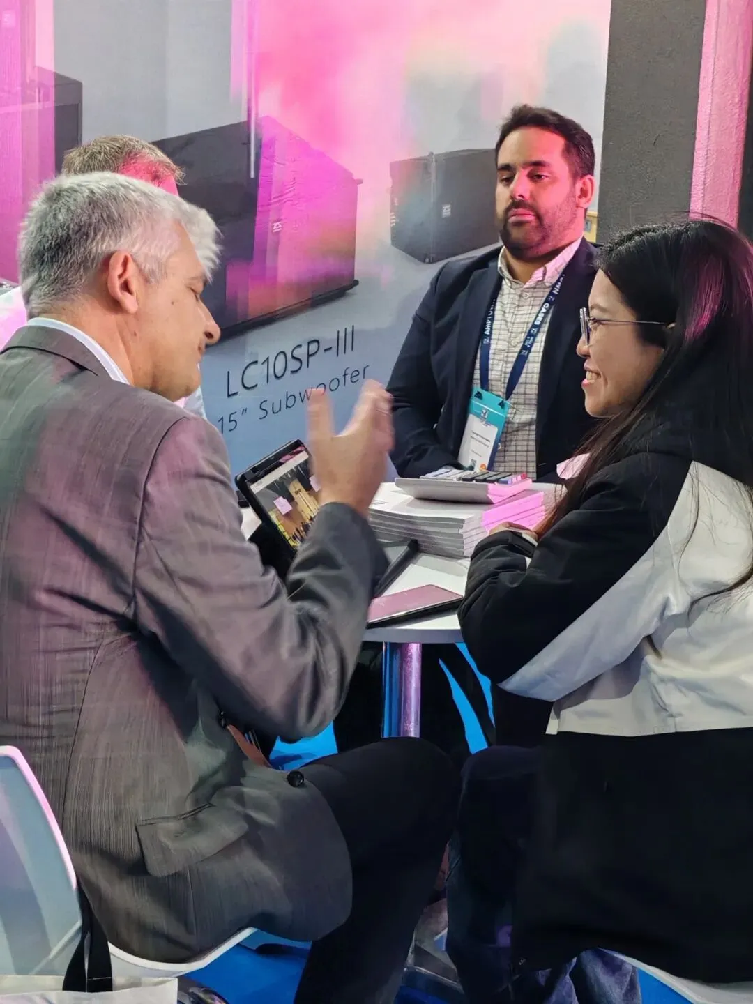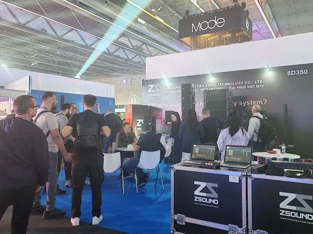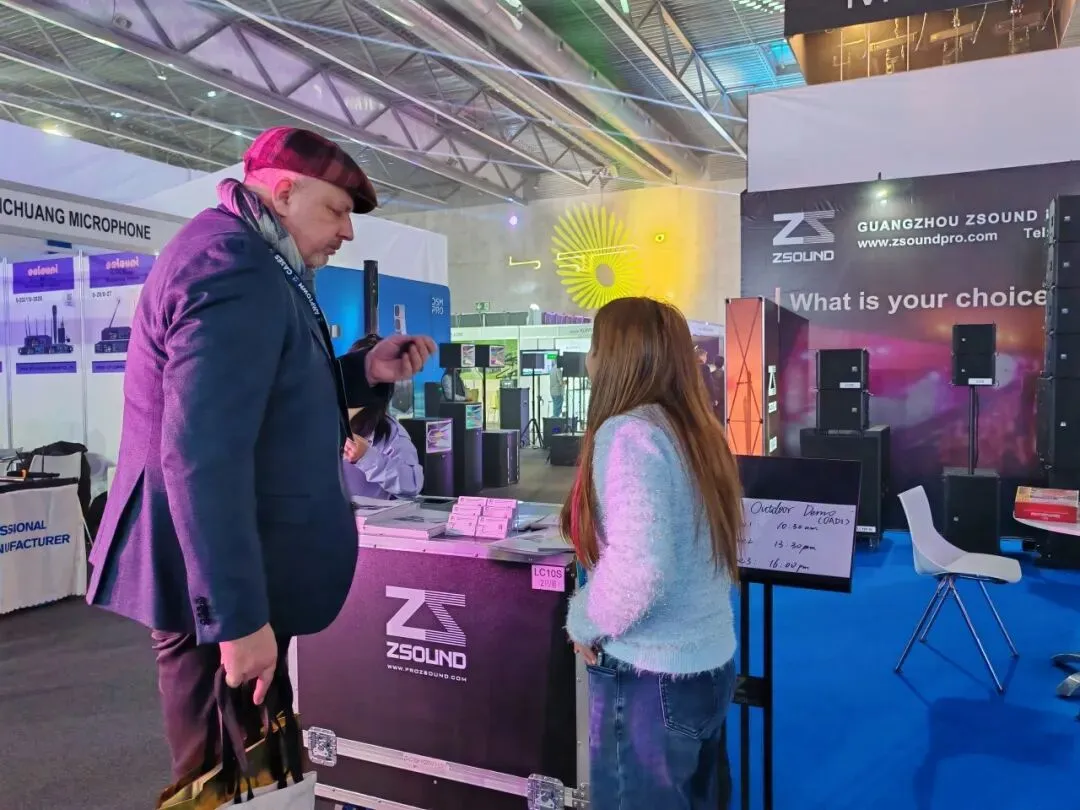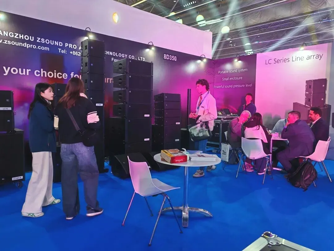 本次ISE展会,ZSOUND声扬音响携旗下LA、LC等系列多款经典与新品重磅亮相。其中室内展示区域,ZSOUND展出了LA206P+LA206SP组合、LA210P+LA208SP组合、LC10DF等多款产品,吸引了不少海外友人前来参观交流。