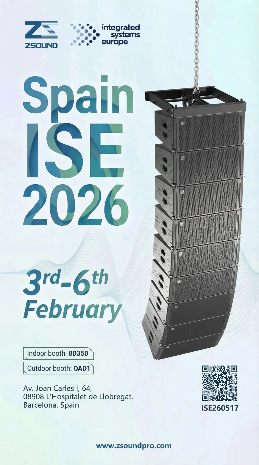 2026年ISE展会将持续至2月6日,ZSOUND声扬音响诚邀全球合作伙伴与行业同仁莅临交流,共同探索声音的无限可能!