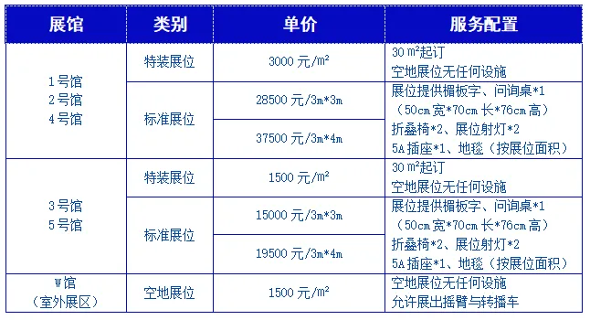展位价格表