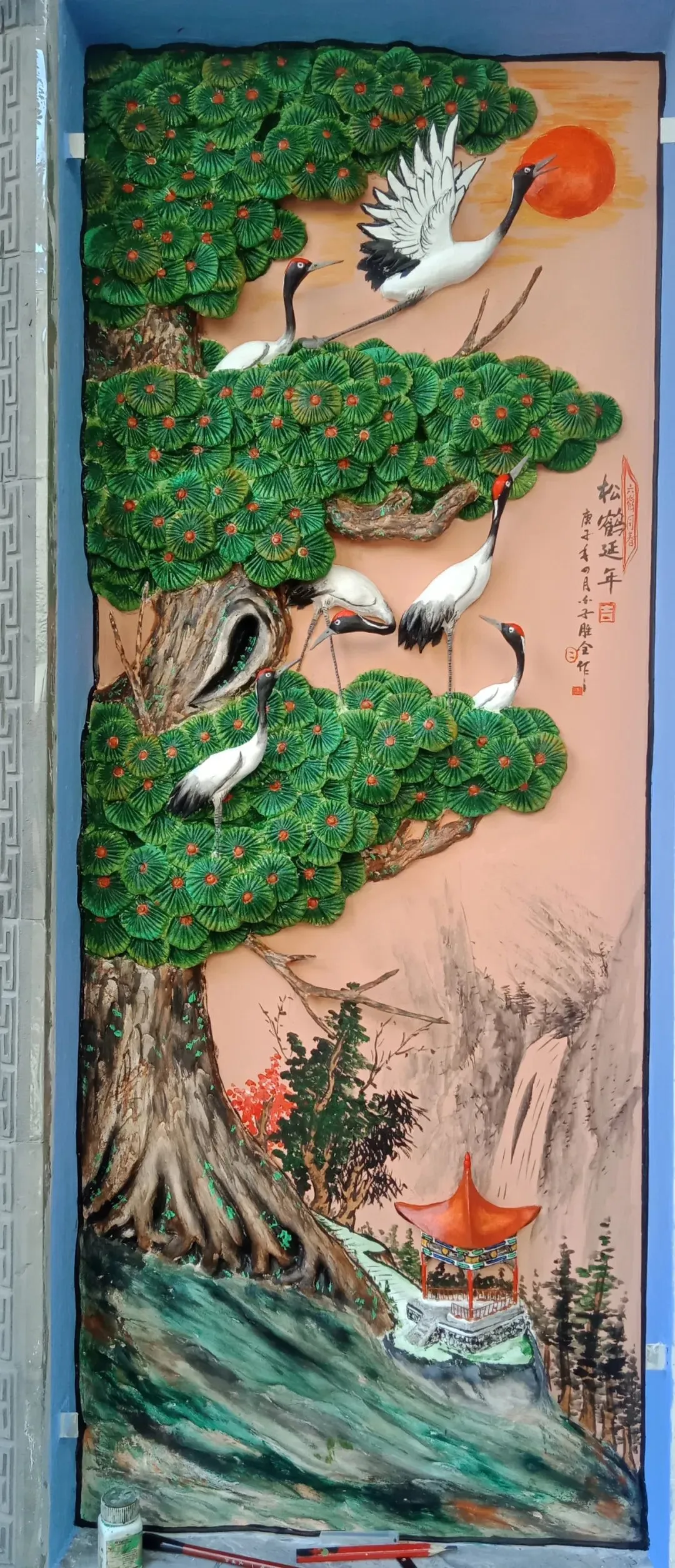 《松鹤延年图》 彩塑 杜胜全
