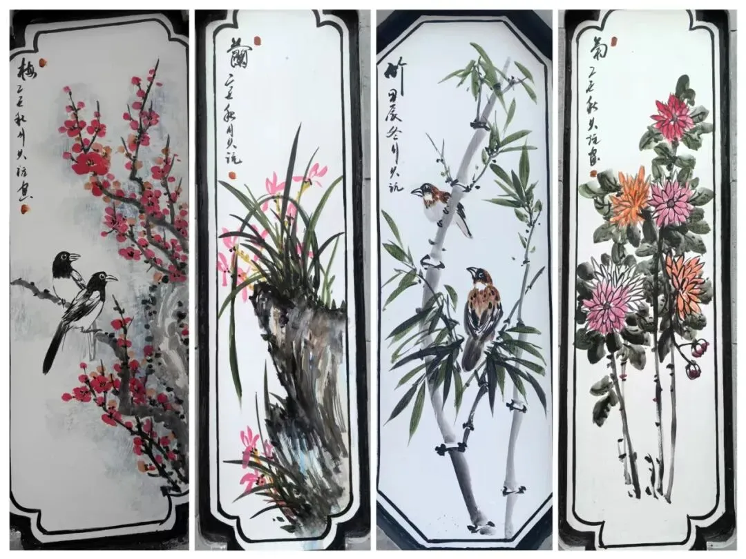 《梅兰竹菊》彩绘 龚久沅