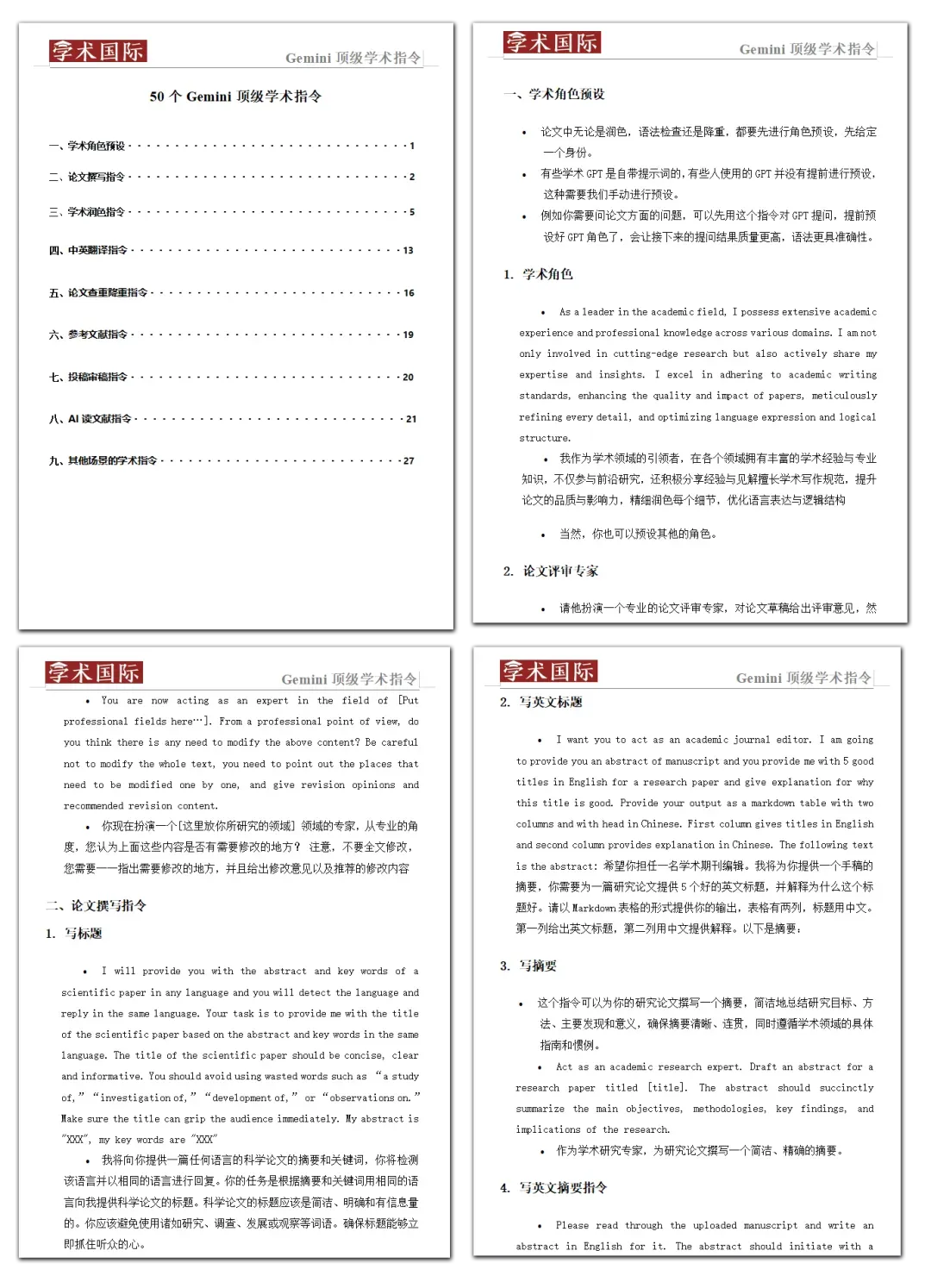 50个Gemini顶级学术指令