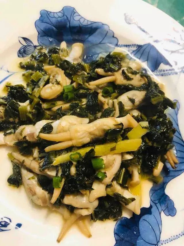 蛏子 适量、雪菜 适量、料酒 适量、姜 适量、葱 适量、鸡精 少许