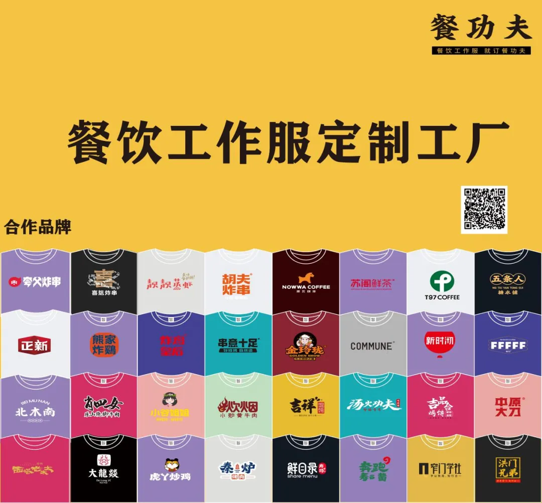 目前服务的品牌包括喜姐炸串、夸父炸串、挪瓦咖啡、苏阁鲜茶、小谷姐姐、炊烟小炒黄牛肉、COMMUNE、西塔老太太、北木南、串意十足、认养一头牛、满记甜品、犟骨头等1000+餐饮品牌。 主做多种款式的餐饮工作服,短袖、卫衣、POLO衫、围裙、厨师服、服务员服、帽子等,多种颜色多种面料可选!