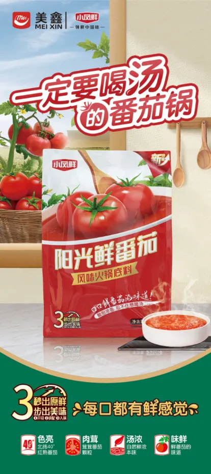 江苏美鑫食品科技有限公司坐落于江苏省徐州市经济开发区,是专业从事餐饮复合调味料研发、生产与销售为一体的现代化企业,公司主营4大系列:火锅风味汤底系列,火锅蘸酱系列,中餐调味酱系列,火锅底料系列;力求打造汤汁酱料新一代调味品领导品牌。总投资5.1亿元,打造5万平方智能化工厂,30余条生产线,年产量可达8万吨。