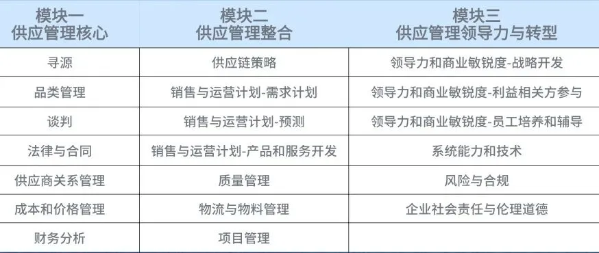 供应管理的领导力和转型(2个小时45分钟,165道题),共三个模块