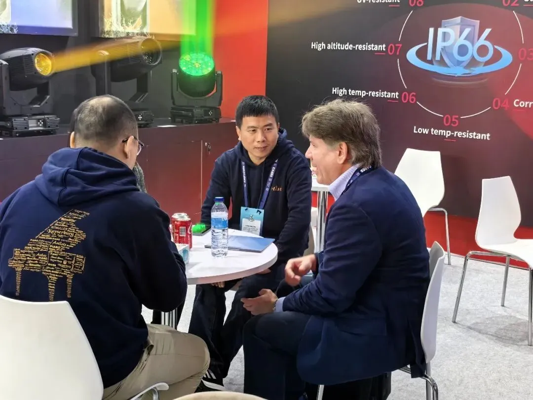 该系列产品凭借高亮度、高光斑均匀性、高显色指数与卓越稳定性,结合长投射距离、超长寿命及轻量便携设计,全面满足灯光师在各类演艺场景中的创意表达,以专业性能为艺术表达提供了坚实支撑。海外专业客户在亲身体验宏洋明道的王牌产品及全新全防护系列后,纷纷给予了高度评价。