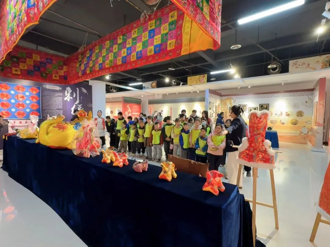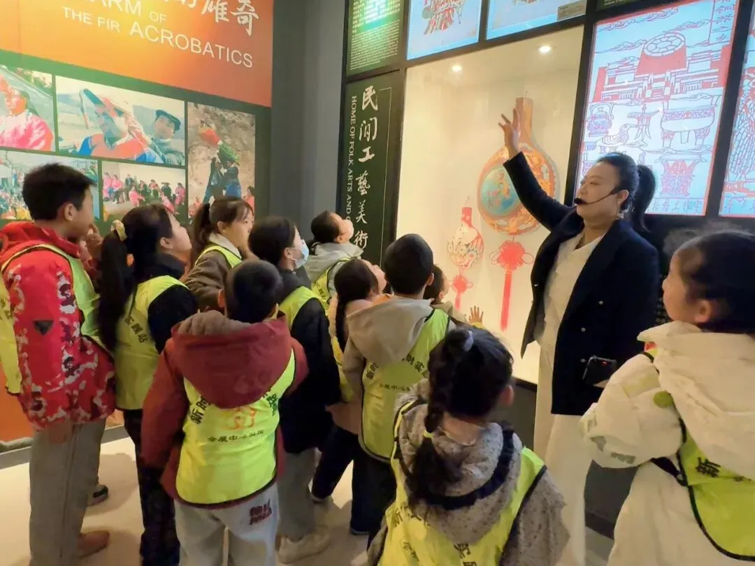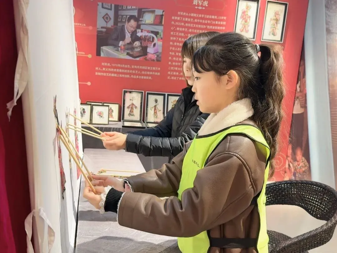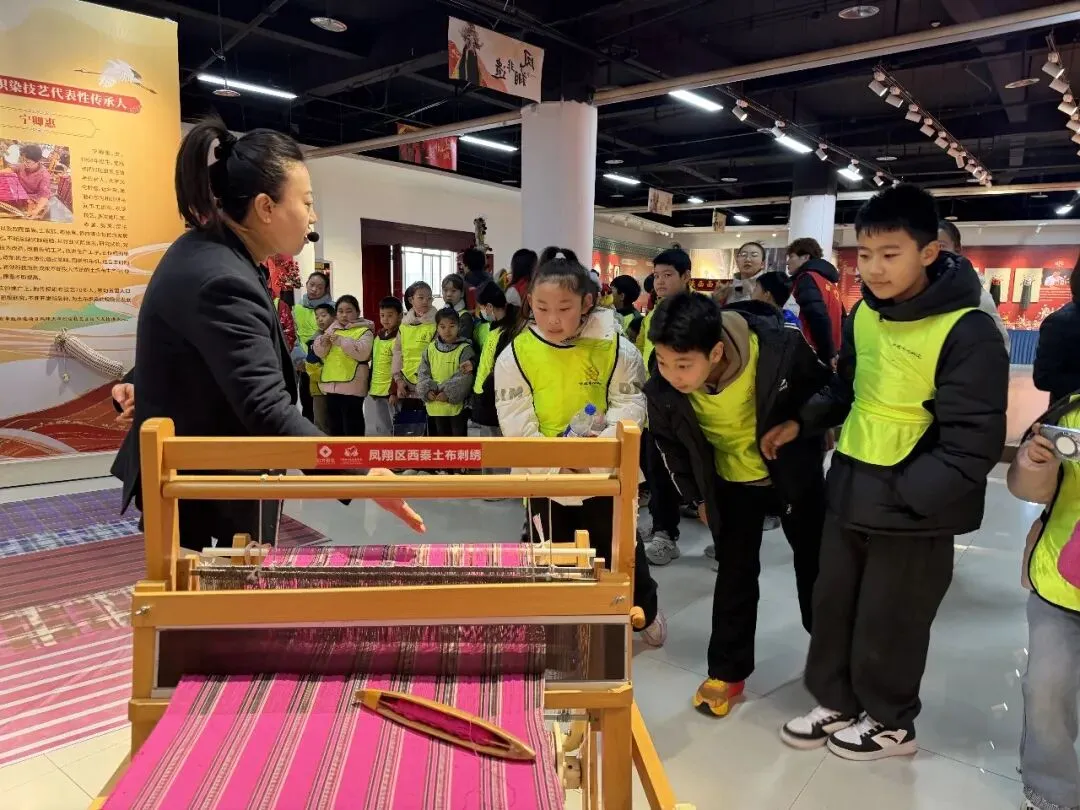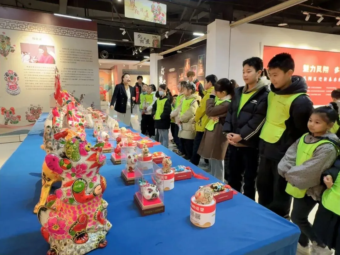 色彩艳丽的凤翔泥塑造型憨态可掬,线条流畅的木版年画充满民俗韵味,图案精美的西秦刺绣尽显匠心,灵动的西府皮影在光影下栩栩如生……孩子们好奇地观察着每一件非遗展品,不时发出惊叹声,有的还主动向讲解员提问,深入了解非遗项目的制作工艺与传承故事。现场氛围热烈而温馨,孩子们在近距离感受中,真切体会到了宝鸡非遗文化的独特魅力与传承价值。