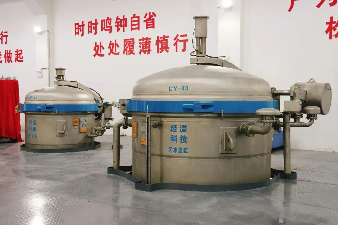 非水介质无水染色技术是溢达集团历经多年研发推出的颠覆性绿色印染技术。该技术采用可近100%循环回用的非水介质替代传统水基染色载体,彻底规避了水浴染色过程中的水解副反应,实现了染色领域多项历史性突破。数据显示,该技术染色介质循环利用率超99.8%,固色率达97%,远超行业60%的平均水平;化学品耗用量减少73%,生产效率提升50%,且无需染后水洗工序,真正实现染色环节零用水、零用盐、废水近零排放的环保目标。