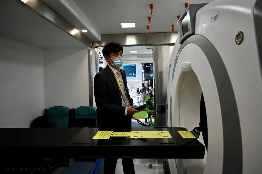 此次展会直观复星展出了国内首台移动全身CT卒中创伤救护车。该车配备了全球唯一可移动式全身扫描CT,简单、快速的工作模式使移动CT可满足诊断的紧迫时间要求,提高患者急救成功率。