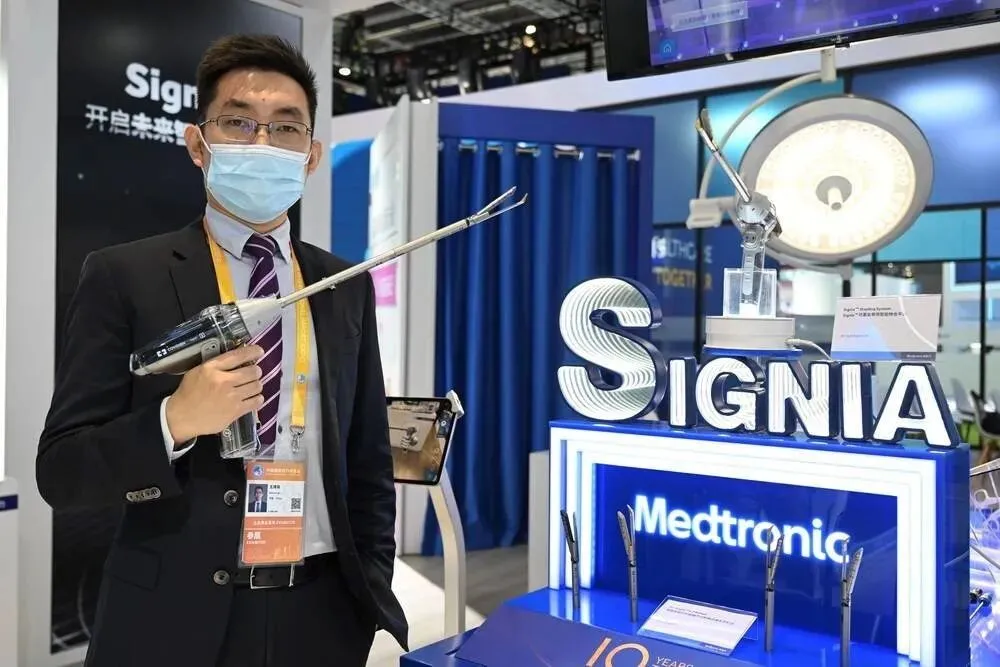SigniaTM智能吻合平台,作为全球首款可重复使用智能吻合平台,SigniaTM第二次亮相进博。它搭载智能芯片联动传感器技术,辅助医生决策,让手术更简单,为腔镜手术带来更多可能。
