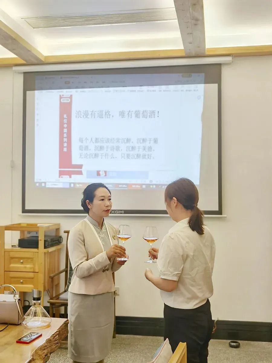 中国梦·劳动美·礼仪教育在行动”。4月20日上午,礼仪中国成都讲师团白利姚老师为眉山东坡水街雪堂月全体员工讲摩尔多瓦米茨酒庄的葡萄酒礼仪文化。