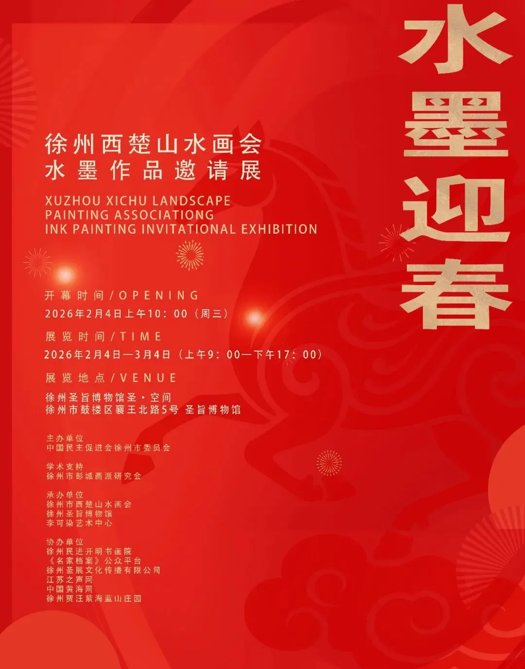 在丙午春节临近之际,由中国民主促进会徐州市委员会主办的“水墨迎春——徐州西楚山水画会水墨作品邀请展”2月4日上午在徐州圣旨博物馆开幕,徐州市政协原副主席张爱军,民进徐州市委会专职副主委孟炳华等百余人参观了画展,来自西楚山水画会及邀请的艺术家为观众奉上一场高质量的艺术盛宴。
