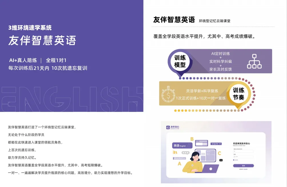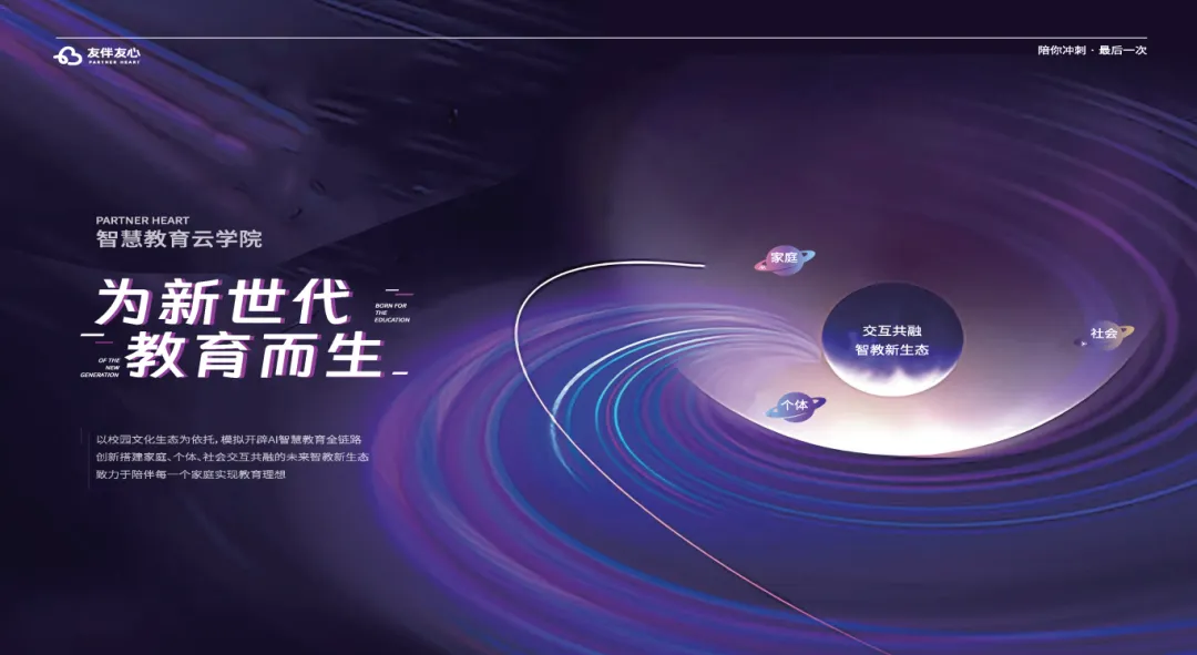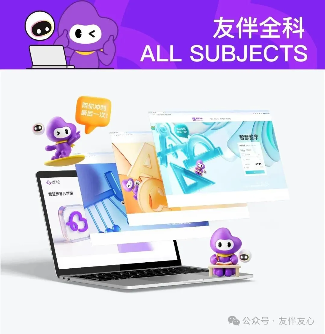 各类产品扎堆涌现,却鲜少有人真正坚守 “以教育为本” 的初心。那时的我们,带着对教育的敬畏与热爱,以英语为切口闯入赛道,秉持 “一所学校教一人” 的核心理念,打造专属 “智慧教育云学院”,用 “陪你冲刺 最后一次” 的坚定承诺,为千万有提分刚需的学生筑起兼具效率与温度的学习港湾。如今,随着行业从 “野蛮生长” 走向 “规范成熟”,友伴友心也迎来了跨越式成长:学科矩阵实现从英语单点突破到数学、物理的全面覆盖,化学、生物等科目也已提上上线日程;服务边界更从 “聚焦提分赋能” 升级为 “全周期成长服务”。