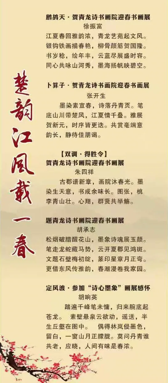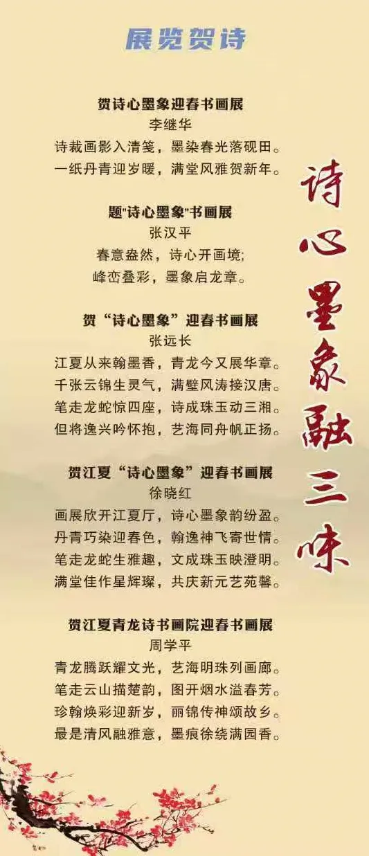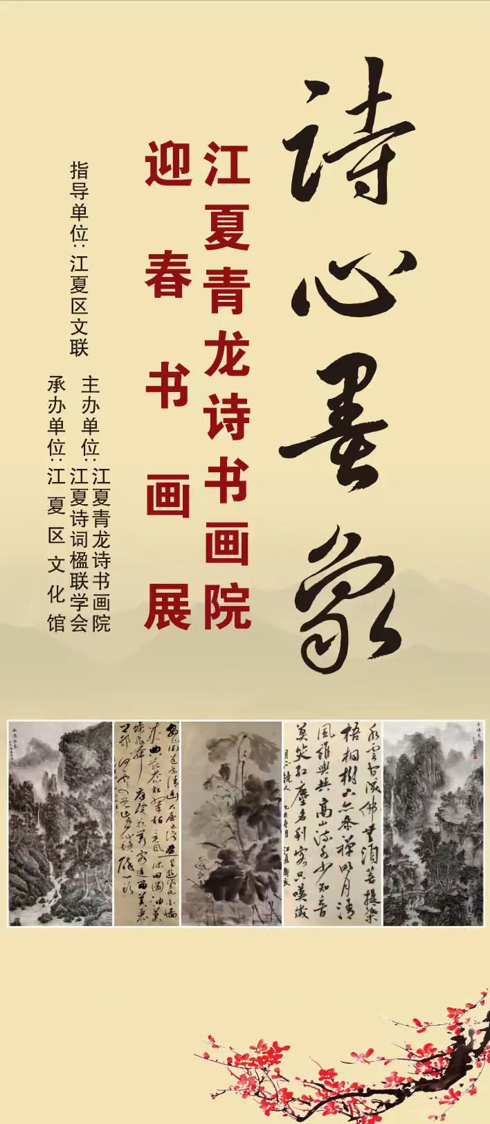 诗心映墨象,岁首启新章。值此新元肇始、万象更新之际,江夏青龙诗书画院司仁,怀赤忱之心,聚雅意之作,于大花山“鸟巢”文化馆,诚呈“迎春书画展”,以笔墨贺岁,以丹青迎春。