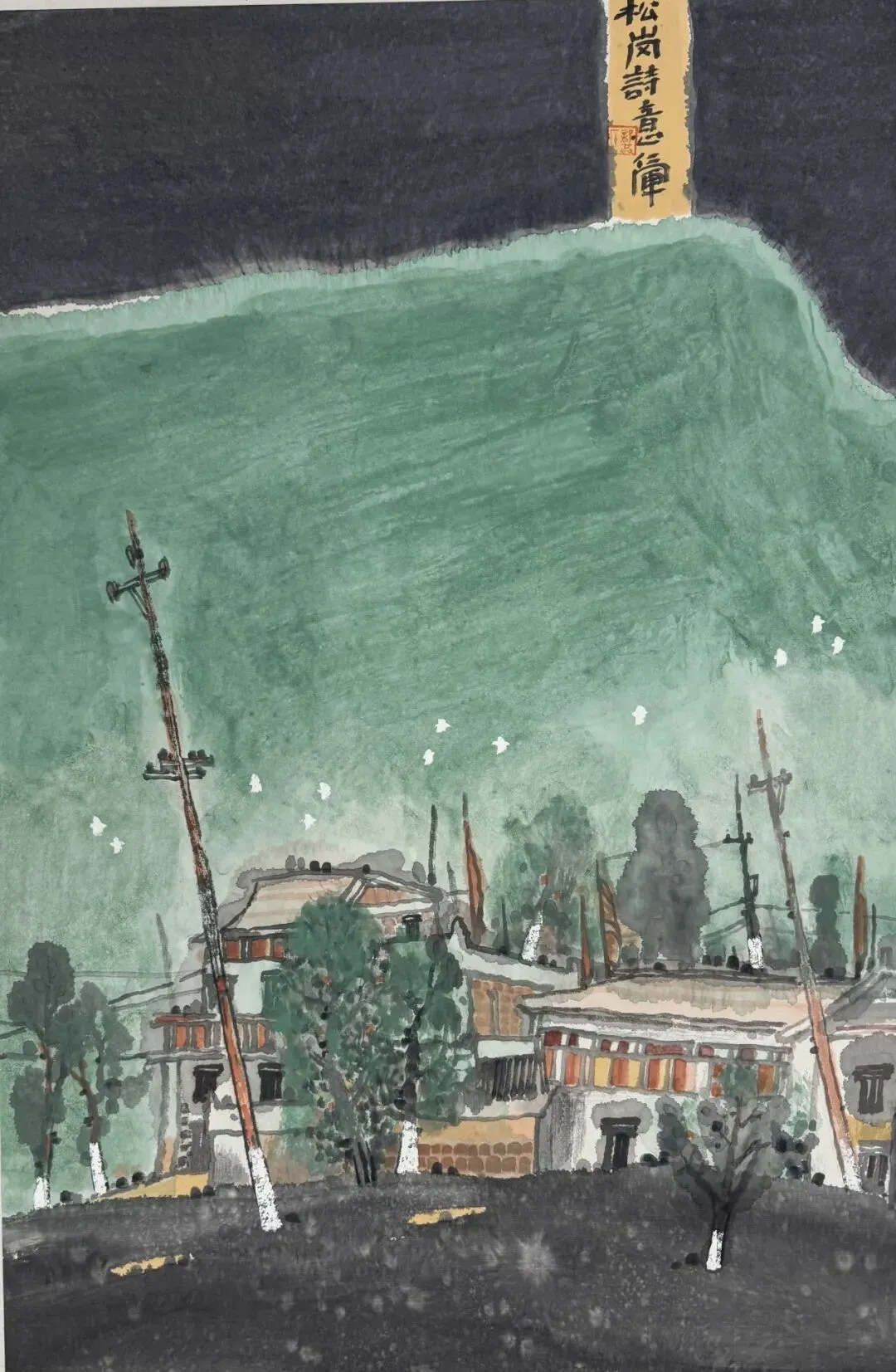 《松岗诗意》中国画 70x46cm 龚仁军