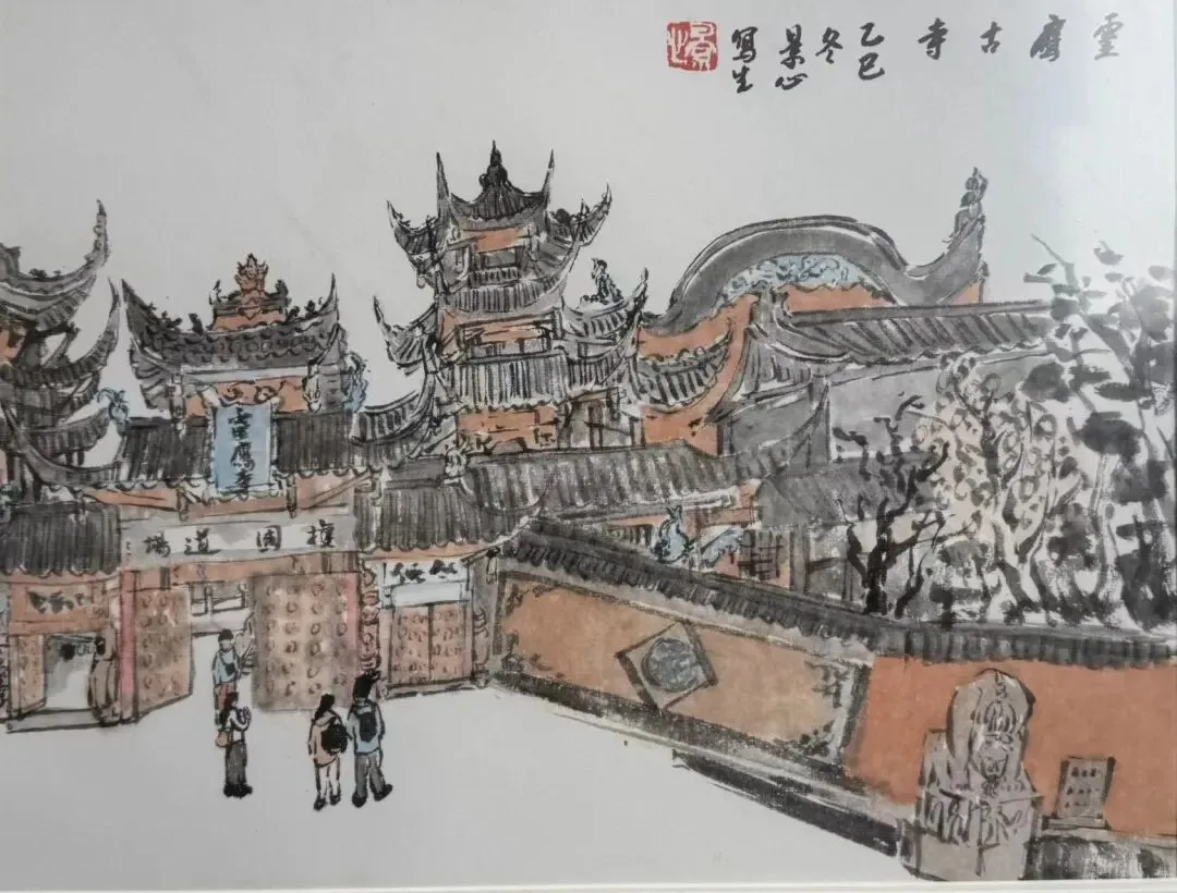 《灵鹰古寺》中国画 33x45cm 刘景心
