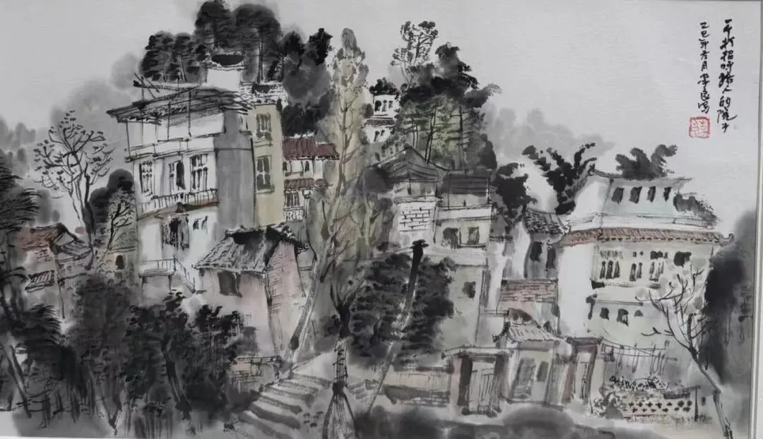 《一个招呼路人的院子》中国画 50x20cm 李良