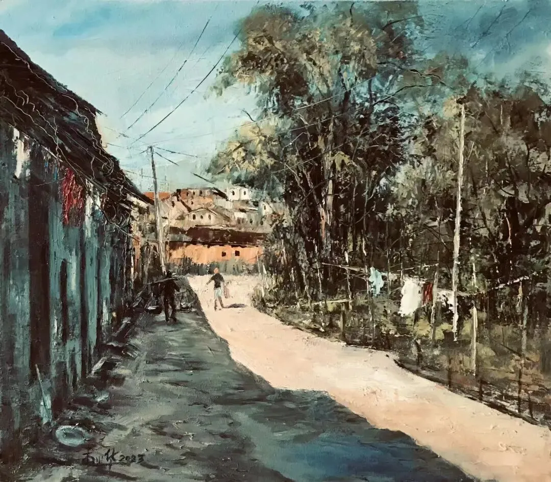 《艾叶古镇》油 画 60x80cm 罗晓航