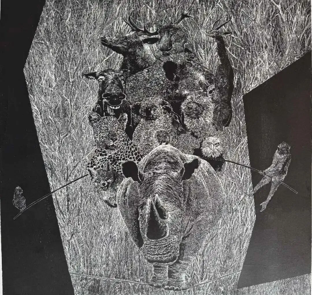 《快乐小分队》木口木刻 60x60cm 尧冰