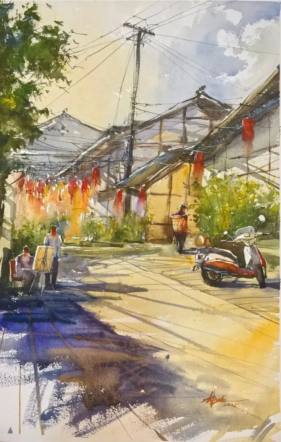 《艾叶古镇》水彩画 30x40cm 赵波