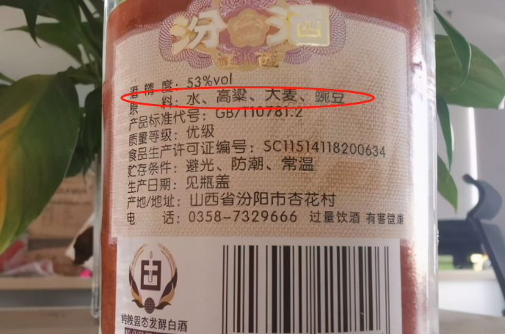 如果它是粮食酒呢,它是会写上粮食的配料的。如果没有的话就必然是勾兑酒。