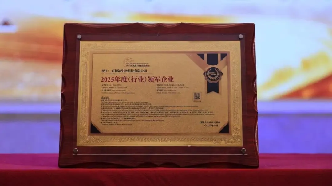 百德福生物科技有限公司凭借其在活性肽研发与产业化方面的突出贡献,荣获“2025年度(行业)领军企业”称号,公司创始人冯卫先生亦获评“2025年度(行业)领军人物”。