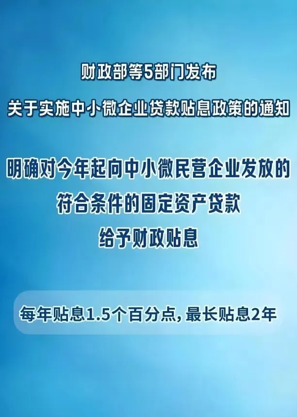 2026年1月30日,国家财政部官网发布《财政部等五部门联合实施中小微企业贷款贴息政策》。主要投向领域涵盖新能源汽车、海洋工程设备等重点产业链及上下游产业,科技服务、节能环保服务等生产型服务业领域,以人工智能等为代表的的新兴领域。