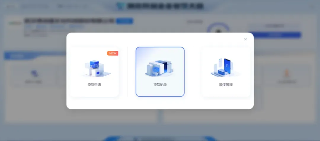 在企业中心点击立即申请贷款按钮或特色服务-知识价值信用贷图标,会打开金融产品超市页面,可选择合适的金融产品进行贷款申请。