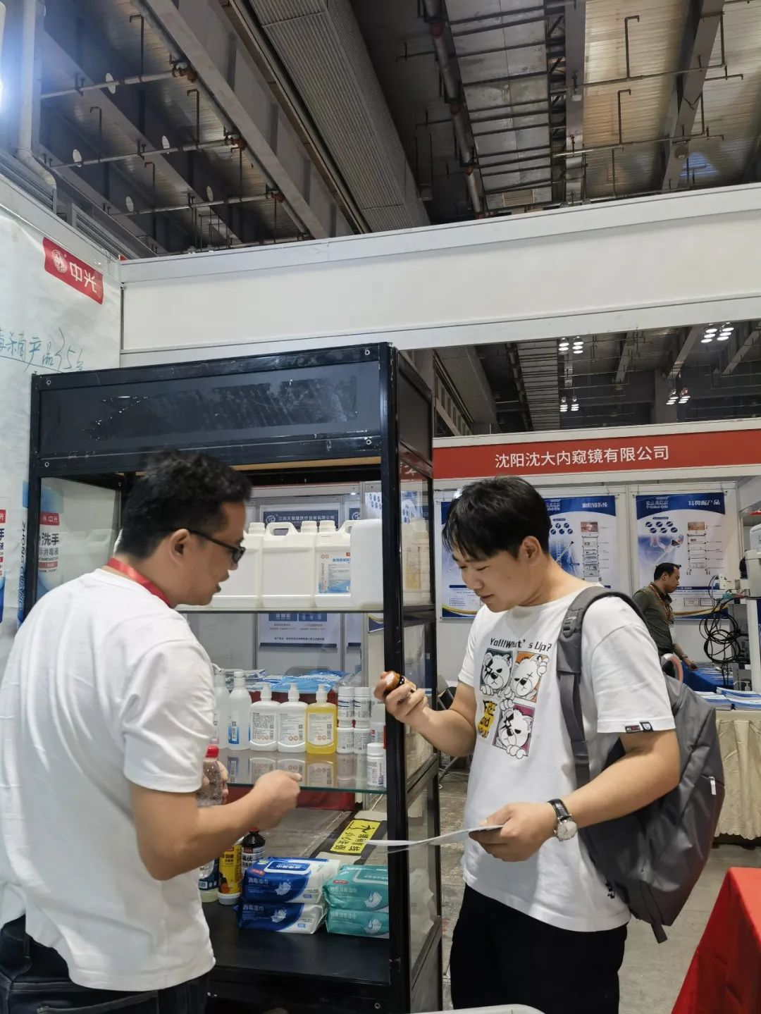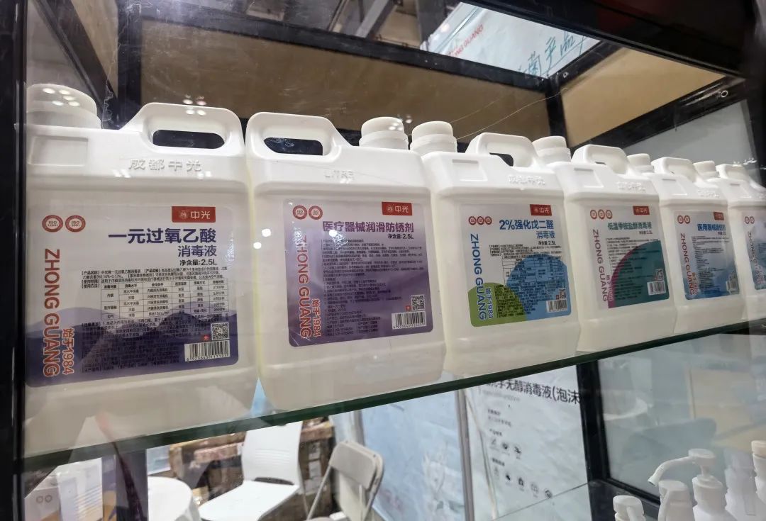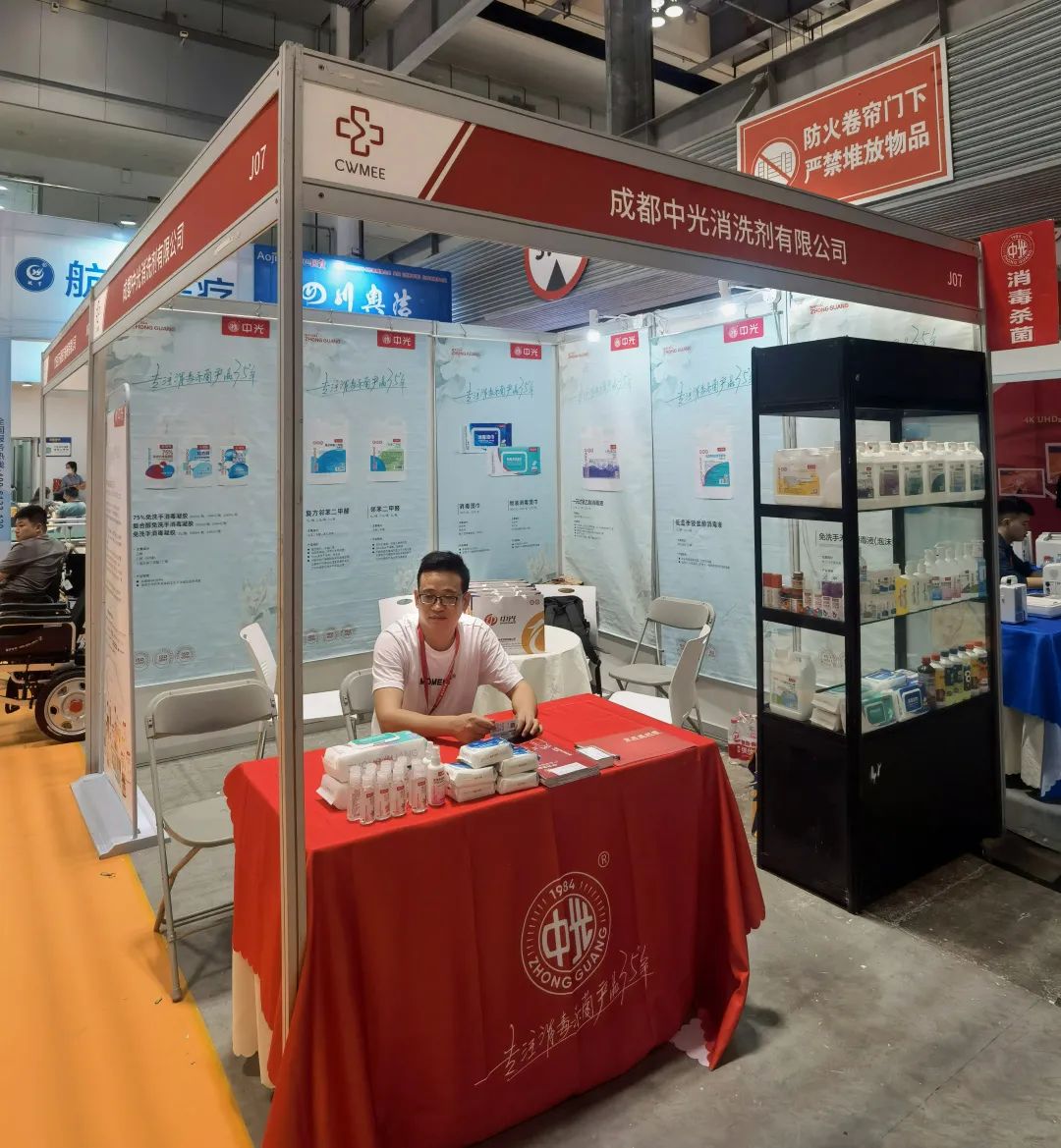 中光产品惊艳亮相!产品包含了器械消毒灭菌系列、皮肤/粘膜消毒系列、手卫生系列、环境和物表消毒系列这四大类消毒产品,在展示过程中,面对参展嘉宾的询问,中光工作人员自信的讲解到产品的有效成分以及适用范围等,多方面的展现了中光产品的优势和功能,使得嘉宾们对中光的专业与产品的品质给予了高度的认可。